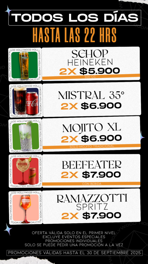 Jack Daniel's en todas sus variedades. Incluye 10 bebidas o agua mineral a elección.